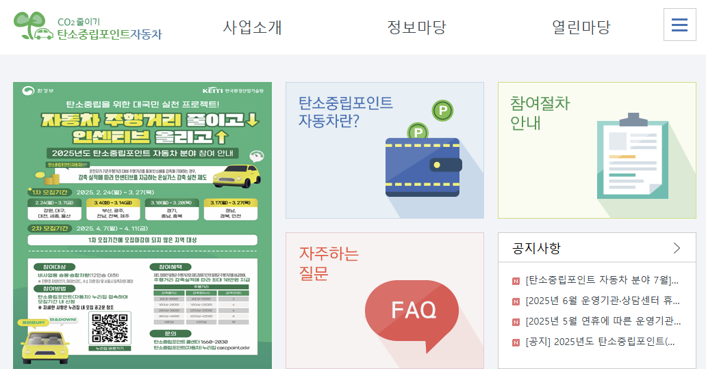 탄소중립 포인트 자동차 홈페이지 개요